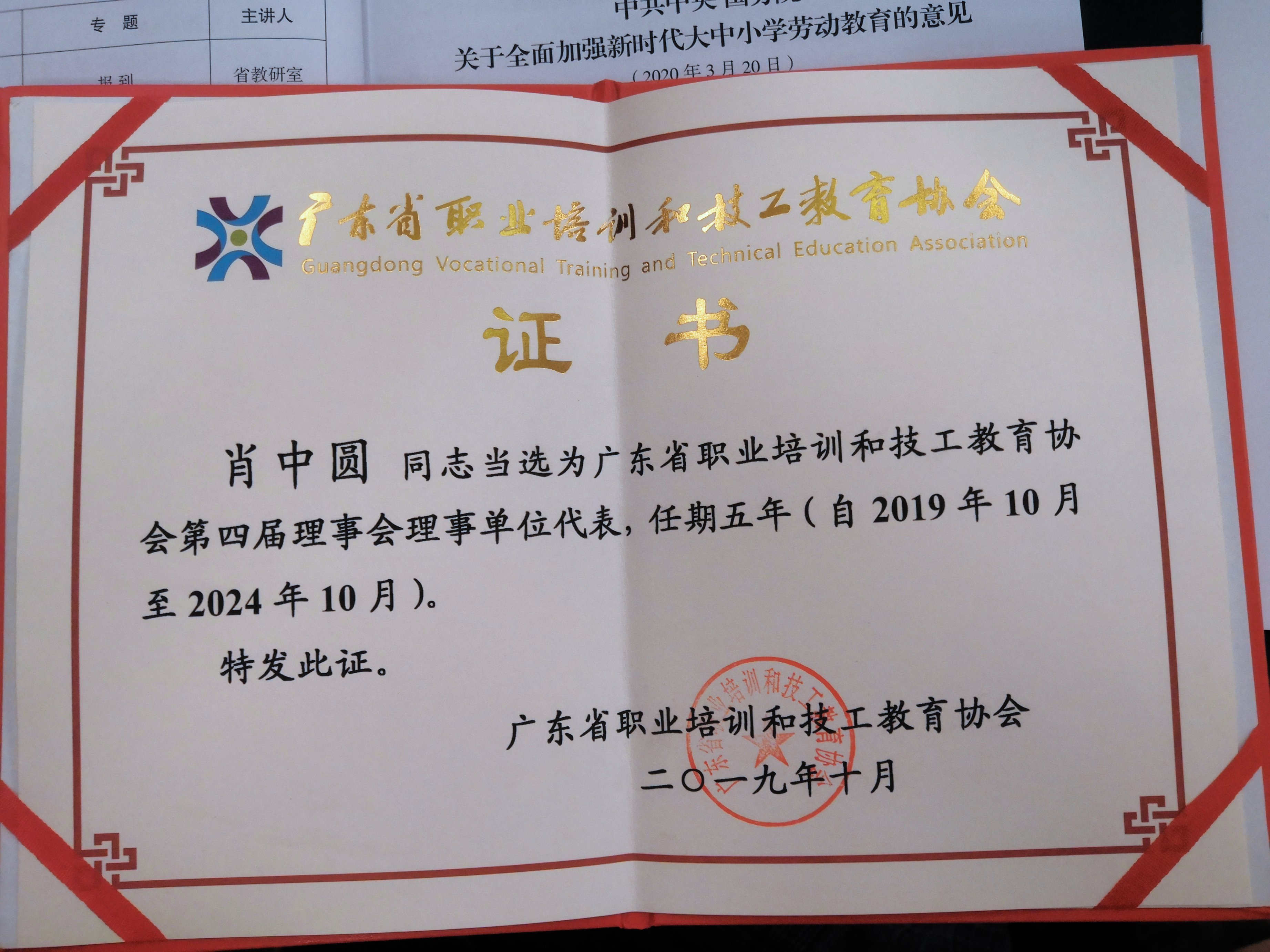 2020年1月:我校執行校長肖中圓當選為廣東省職協第四屆理事會理事單位代表