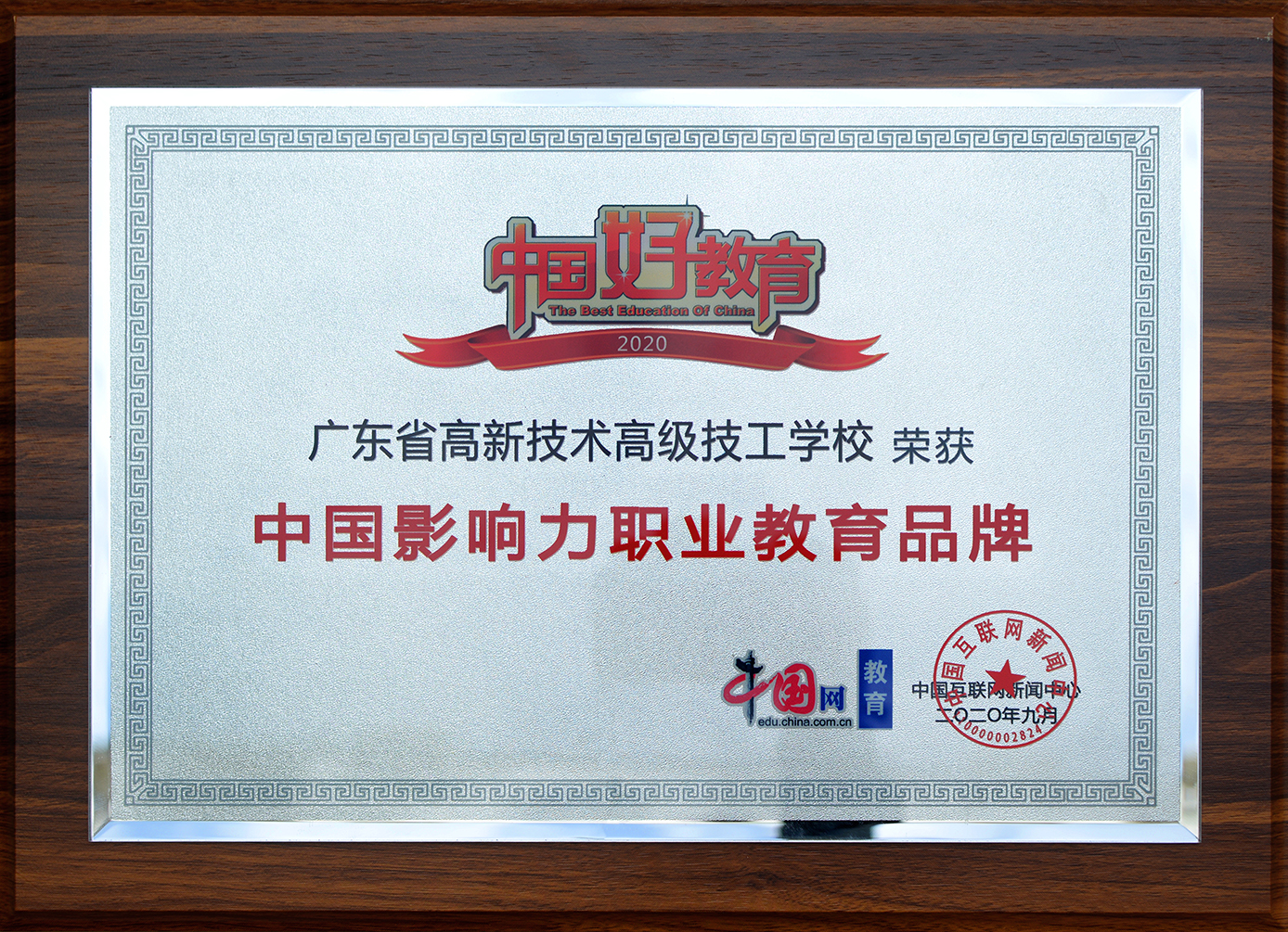 2020年9月24日:?我校榮獲“中國好教育”之中國影響力職業教育品牌