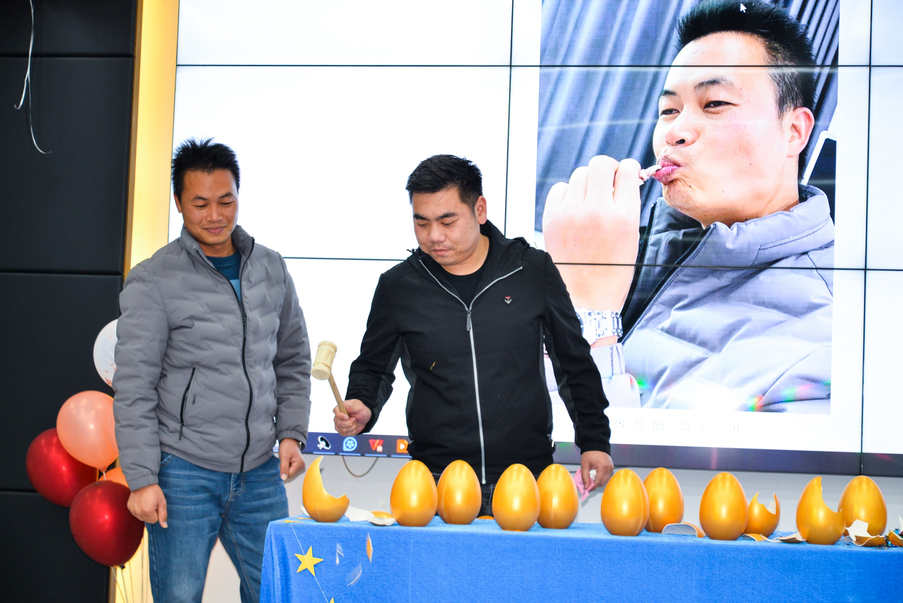 砸(za)金蛋是(shi)最激動人心的環節(jie),錘子一(yi)落,金蛋一(yi)破(po),預示著破(po)繭而(er)出,美(mei)好的事(shi)物(wu)會在新的一(yi)年如約而(er)至。