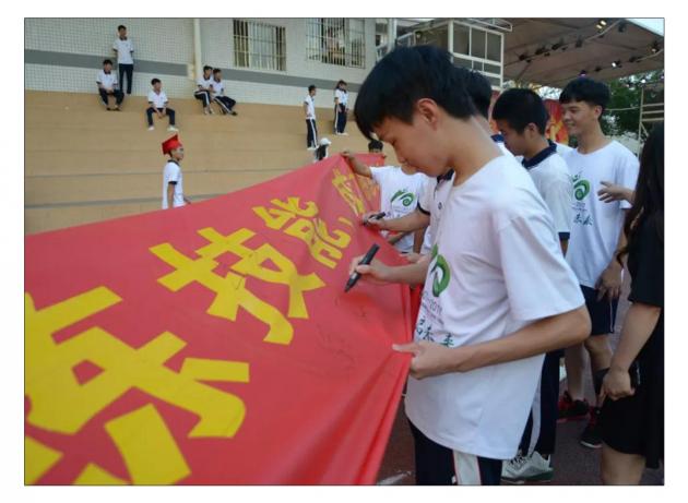 5月24日,廣東省(sheng)高新技(ji)術(shu)(shu)技(ji)工(gong)學(xue)校第(di)三屆(jie)“勇擔成(cheng)長責任(ren)(ren)(ren),奮斗成(cheng)就(jiu)夢想”成(cheng)人禮在西區足(zu)球場舉行,300多名高新學(xue)子,在老(lao)師和家長的(de)共同(tong)見證下,用激昂(ang)的(de)誓言宣(xuan)告他們步(bu)入成(cheng)人行列。出席成(cheng)人禮儀式(shi)的(de)校領導(dao)和嘉(jia)賓有(you)朱瑞堅校長助理(li)、就(jiu)業辦胡文鵬主任(ren)(ren)(ren)、經貿(mao)系(xi)曾(ceng)成(cheng)主任(ren)(ren)(ren)、汽車工(gong)程系(xi)鄭大國主任(ren)(ren)(ren)、藝(yi)術(shu)(shu)系(xi)王(wang)慶有(you)主任(ren)(ren)(ren)、機電工(gong)程系(xi)余錫靈(ling)主任(ren)(ren)(ren)、學(xue)生處羅鴻群副(fu)處長、宣(xuan)傳辦梁偉(wei)伙(huo)副(fu)主任(ren)(ren)(ren)、17會計2班徐奕丹(dan)同(tong)學(xue)的(de)媽媽王(wang)秀(xiu)麗(li)女(nv)士。儀式(shi)由團委書記張幫岐老(lao)師主持。