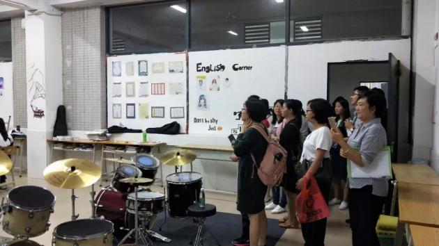 在(zai)學生處負責社團(tuan)管理、團(tuan)委工作(zuo)的(de)劉(liu)榮(rong)榮(rong)老師的(de)帶(dai)領下,來賓們一起(qi)參觀(guan)音(yin)樂(le)協會基地,剛到門口,歌唱聲、吉(ji)他奏樂(le)等不絕于(yu)耳,這是(shi)音(yin)樂(le)協會的(de)同學們正在(zai)進行訓練。