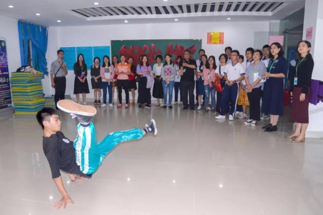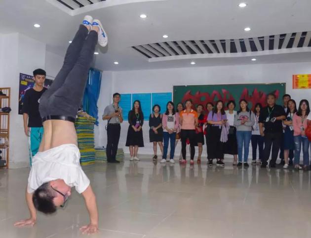 來(lai)到了(le)街舞(wu)協會,街舞(wu)協會的邱(qiu)偉(wei)東老師和(he)協會成員們非常(chang)熱(re)情,分(fen)別給(gei)來(lai)賓(bin)們表演(yan)了(le)霹靂舞(wu)和(he)機(ji)械舞(wu),來(lai)賓(bin)們紛紛鼓掌喝彩。