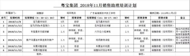 11月13日,入選粵(yue)寶(bao)集團銷售助理崗位(wei)的(de)50名同學們也開(kai)始了車展展前培訓,培訓內容包括(kuo)寶(bao)馬車基本(ben)知識(shi)、歷史(shi)及車型(xing)基本(ben)功(gong)能、客戶(hu)溝通(tong)話(hua)術、車展問題(ti)答疑等,課程表如下: