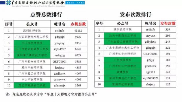 ? ? 據(ju)悉,活動(dong)共收到全省100所技工院校中的53所報送66個微(wei)信(xin)公(gong)眾(zhong)號與(yu)132篇微(wei)信(xin)公(gong)眾(zhong)號文章。通過運營數據(ju)抓取(qu),產(chan)生(sheng)了(le)年(nian)度十大(da)(da)影響力官方(fang)(fang)微(wei)信(xin)公(gong)眾(zhong)號、年(nian)度十大(da)(da)閱讀量官方(fang)(fang)微(wei)信(xin)公(gong)眾(zhong)號文章;通過網(wang)絡(luo)投票(piao),產(chan)生(sheng)了(le)十大(da)(da)人氣微(wei)信(xin)公(gong)眾(zhong)號;通過專家(jia)評審,評出了(le)優秀微(wei)信(xin)公(gong)眾(zhong)號40個、優秀微(wei)信(xin)公(gong)眾(zhong)號原創文章50篇。