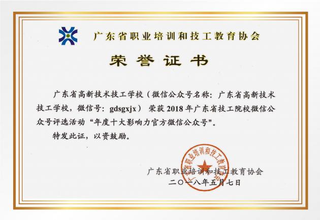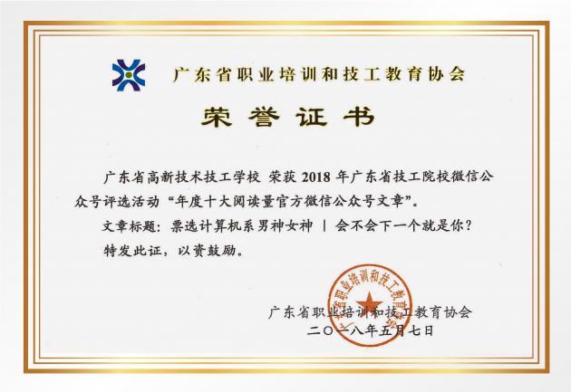 ? ? 此次評選活動中(zhong),我校“廣東(dong)省高新技術技工學校”微信公眾號獲得了“年度十大影(ying)響力(li)官方微信(xin)公眾號”、“優秀微信公眾號”,文章《票選計算機男神女神|會不會下一個就是你!》獲得“年度十大閱讀量官方微信公眾號文章”。其中“年度十大影響力官方微信公眾號”,我校微信(xin)公眾號全省排(pai)名(ming)第二。