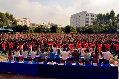 接著,校長張天培為2014級新生班主任送上情深意重的寄語。他首先代表學校對各位班主任給予學校的支持表示感謝,對班主任敢于擔當,勇挑重擔的精神表示崇高的敬意!他深情地說,我們的2800名新生,意味著2800個家庭的殷殷期望,意味著2800個嶄新的人生,更意味著2800個美好的夢想!面對這2800雙年輕而渴望的目光,我們唯有“春蠶到死絲方盡,蠟燭成灰淚始干”!對各位班主任,他信心滿懷,并語重心長寄予厚望!他希望,用班主任的愛和責任,點燃希望的光芒;用班主任的奉獻和熱誠,盡染青春的色彩;用班主任的執著和信念,鑄就夢想的實現!他相信,新聘任的54名班主任一定能不負重望,創造出優異的成績!最后,張校長和全體領導成員對班主任深深致謝!