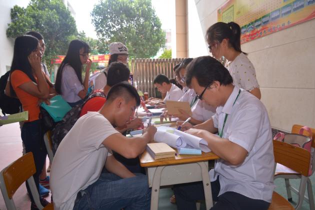 ? ?中午隨(sui)著溫度的(de)逐漸上(shang)升,迎新工作也進入白熱化階段,校(xiao)園各處都(dou)是忙碌的(de)身影。從接待、注冊到(dao)新生報到(dao)、辦理入住手(shou)續(xu),一(yi)條(tiao)龍服務(wu),保(bao)障了迎新接待的(de)有序進行(xing)。? ?報讀汽車(che)工程(cheng)系汽車(che)維修與管(guan)理(li)專業(ye)的(de)黃同學(xue)說(shuo):“剛來到學(xue)校,面(mian)對(dui)(dui)陌(mo)生(sheng)的(de)環境、陌(mo)生(sheng)的(de)人(ren),難(nan)免有(you)些(xie)害怕,但是(shi)學(xue)校的(de)老師(shi)特(te)別(bie)親(qin)切,同學(xue)們也特(te)別(bie)熱情,從踏進(jin)校門到住進(jin)宿(su)舍,全(quan)程(cheng)都有(you)人(ren)陪伴指引(yin),很快就(jiu)吧所有(you)的(de)手續辦(ban)好安頓(dun)下來,真的(de)讓我感受到家一(yi)般的(de)溫暖。”當(dang)筆者問起對(dui)(dui)學(xue)校的(de)第一(yi)印象,黃同學(xue)說(shuo),“校園(yuan)環境優(you)美,各(ge)方面(mian)都比我想象中好”。